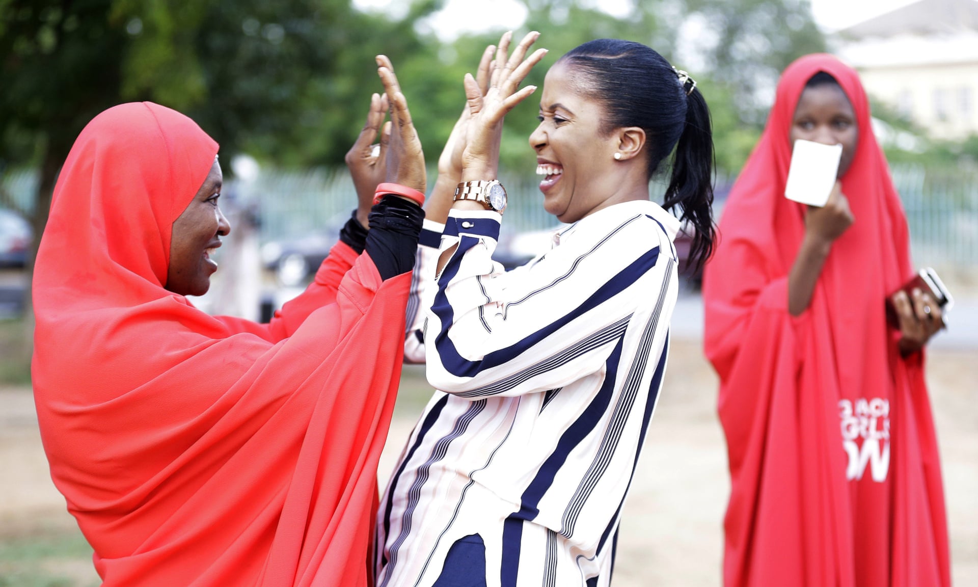 Bring Back Our Girls campaigners celebrate the release of the kidnapped Chibok schoolgirls an Abuja, Nigeria
